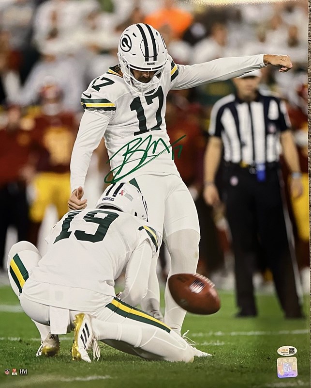 An autographed 16x20 photo of Green Bay Packers Kicker BRANDON McMANUS. This item comes with JSA authentication.