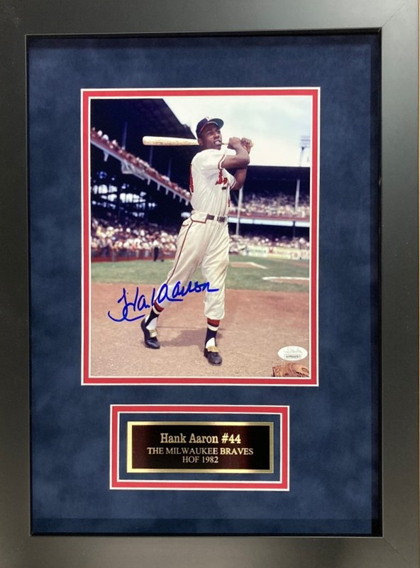 Framed Autographed 8x10 Photo - Milwaukee Braves Hall of Famer HANK AARON