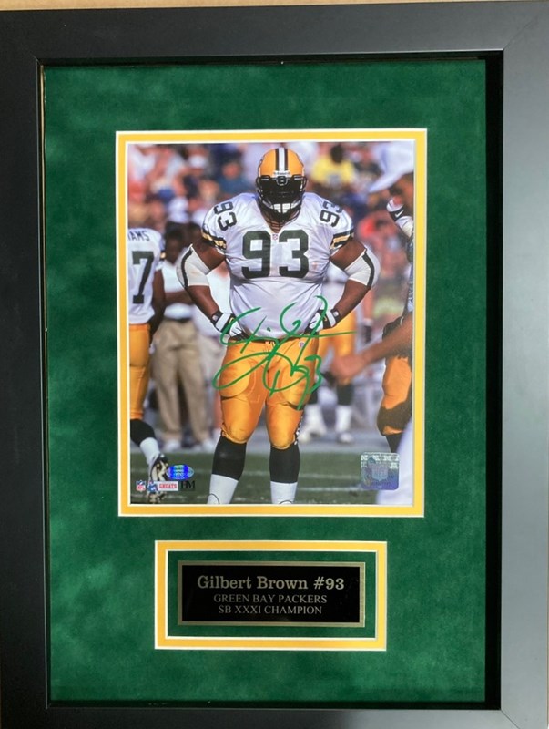 Framed Autographed 8x10 Photo - Green Bay Packers Super Bowl Champion Gilbert Brown