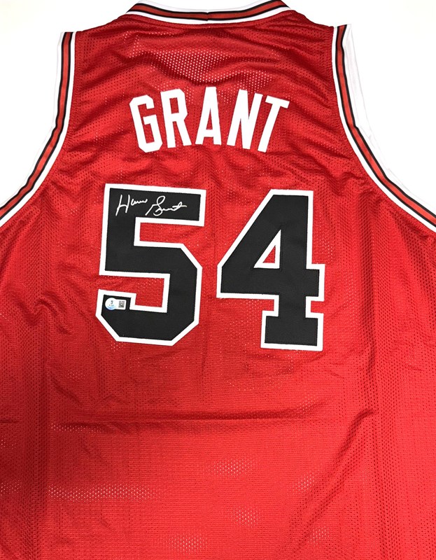 An autographed custom replica jersey by Chicago Bulls Legend HORACE GRANT. This item comes with Beckett Authentication. The jersey is size XL and has all letters and numbers sewn on.
