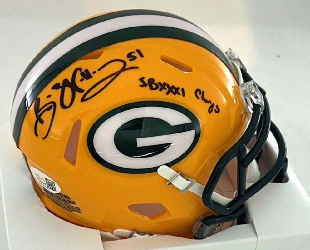 An autographed mini helmet by Green Bay Packers Super Bowl Champion Receiver BRIAN WILLIAMS with the inscription "SB XXXI Champs". This item comes with JSA Authentication.