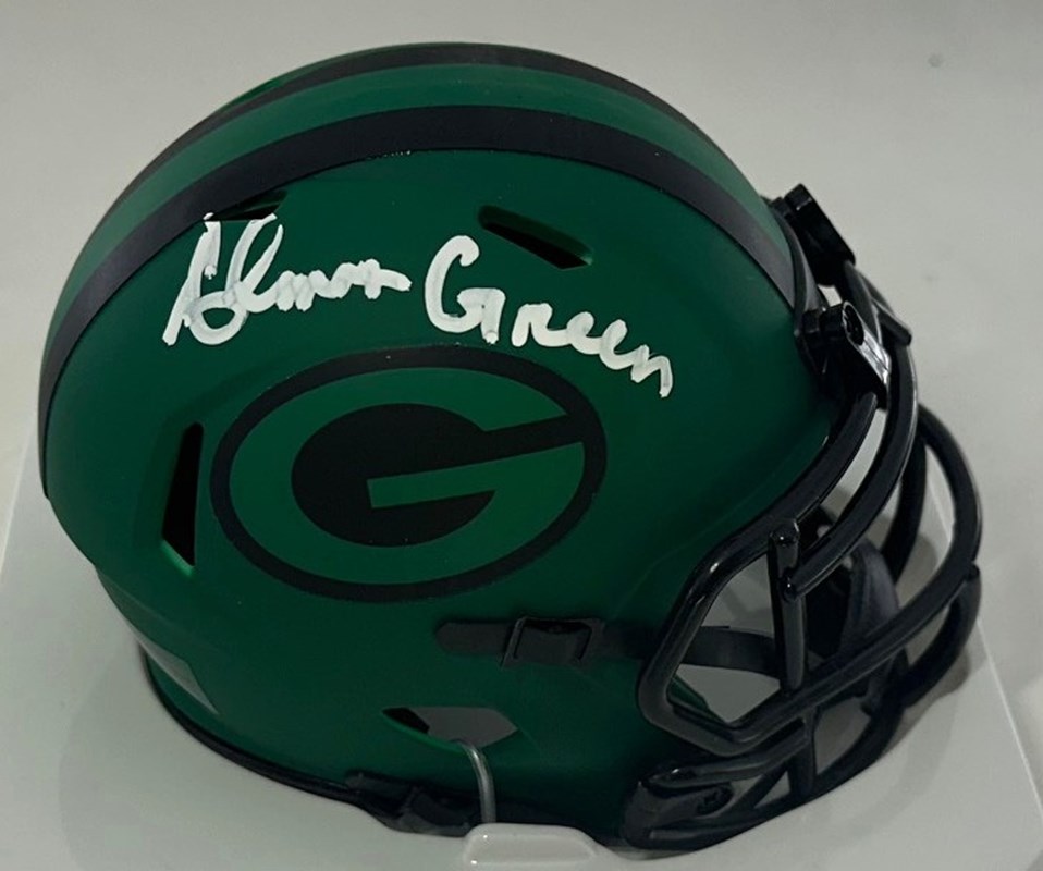 Autographed Riddell RAVE mini helmet by Green Bay Packers All Time leading rusher AHMAN GREEN. This item comes with Beckett authentication.