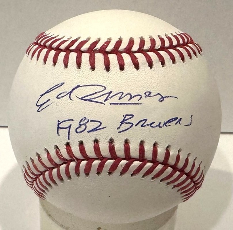 An autographed Official MLB Baseball of Milwaukee Brewers Infielder ED ROMERO with the inscription "'82 Brewers". This item comes with JSA authentication.