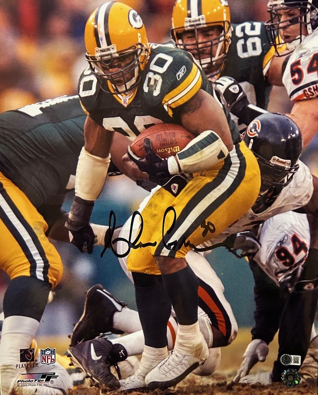 An autographed 16x20 photo of Green Bay Packers All Time Leading Rusher AHMAN GREEN. This item comes with Beckett authentication.