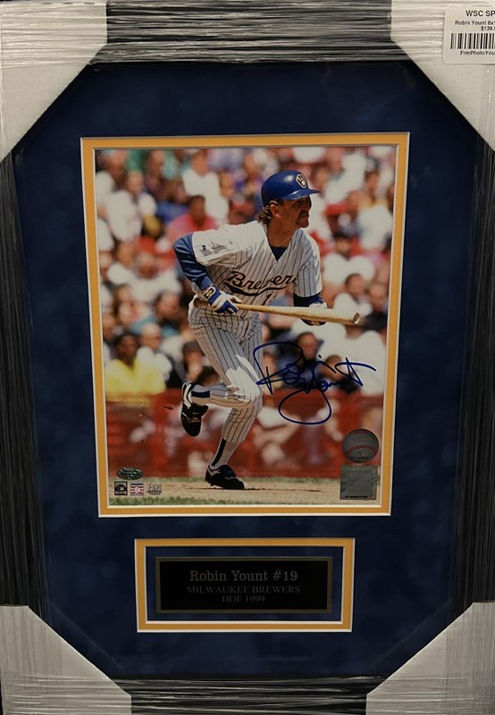 An autographed, framed 8x10 photo of Milwaukee Brewers Hall of Famer ROBIN YOUNT.