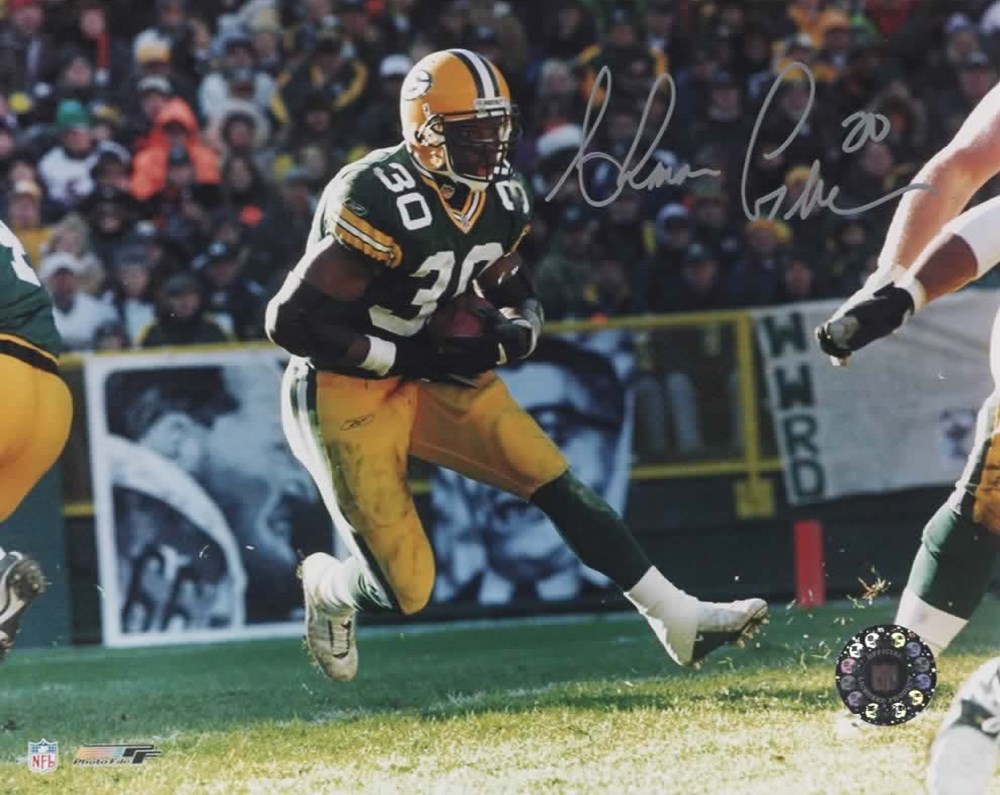 An autographed 8x10 photo of Green Bay Packers All Time Leading Rusher AHMAN GREEN.