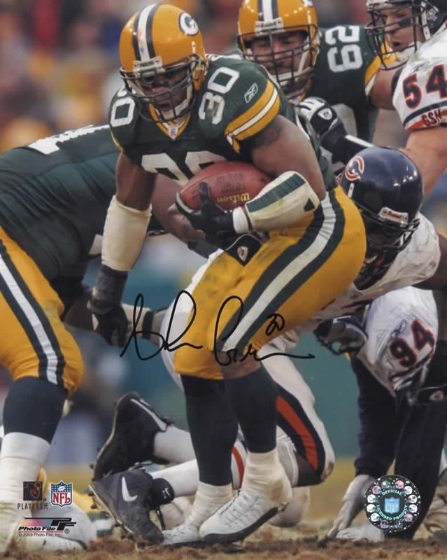 An autographed 8x10 photo of Green Bay Packers All Time Leading Rusher AHMAN GREEN.