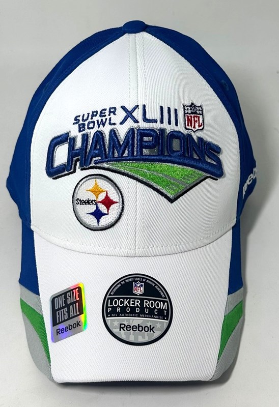 A Brand new official Pittsburgh Steelers Super Bowl XLIII Championship Reebok hat. One size fits all. Comes with original tags.
