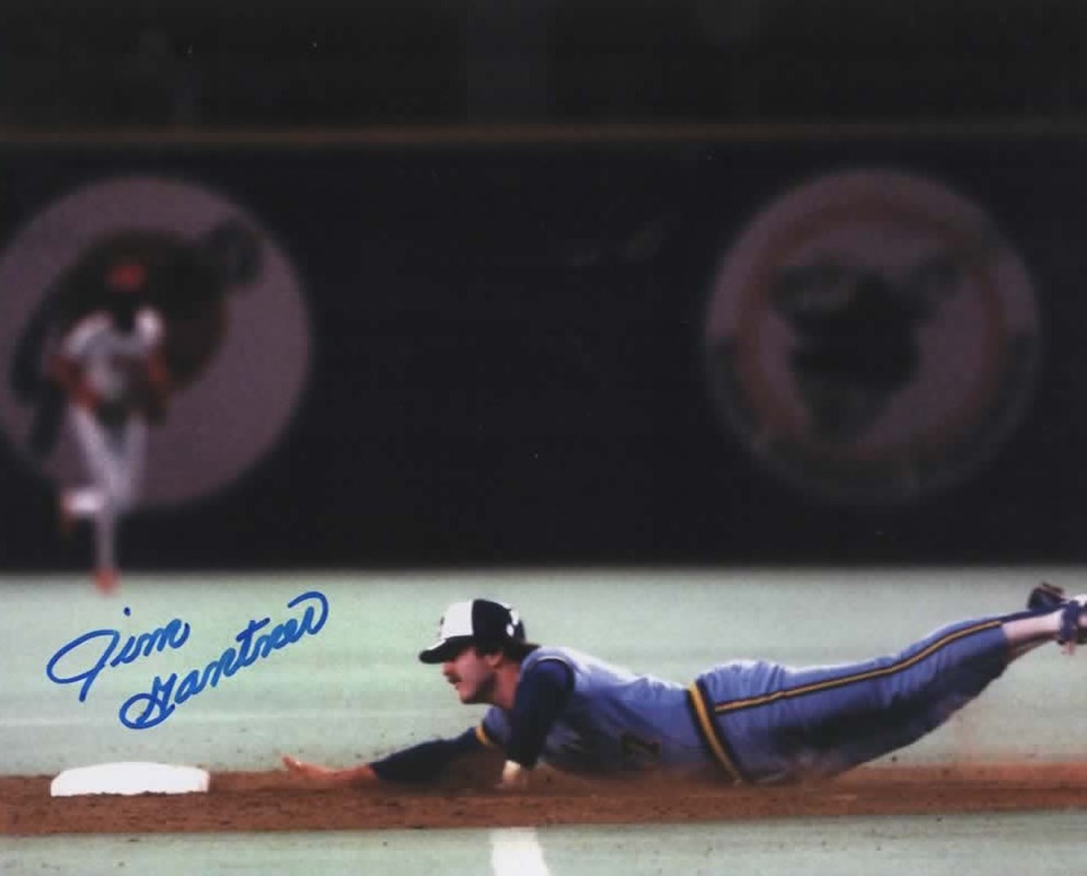 An autographed 8x10 photo of former Milwaukee Brewers infielder JIM GANTNER.