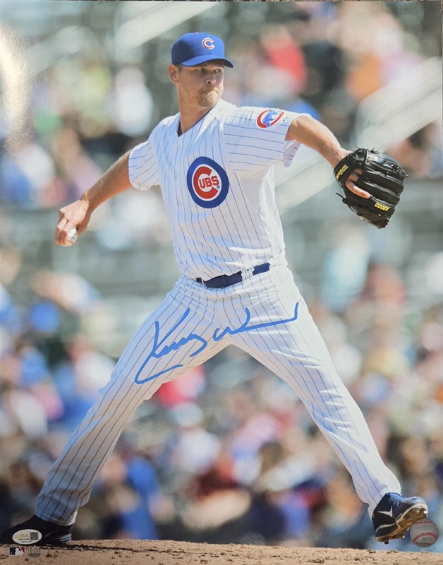 An autographed 16x20 photo by Chicago Cubs legendary pitcher KERRY WOOD. This item comes with JSA authentication.