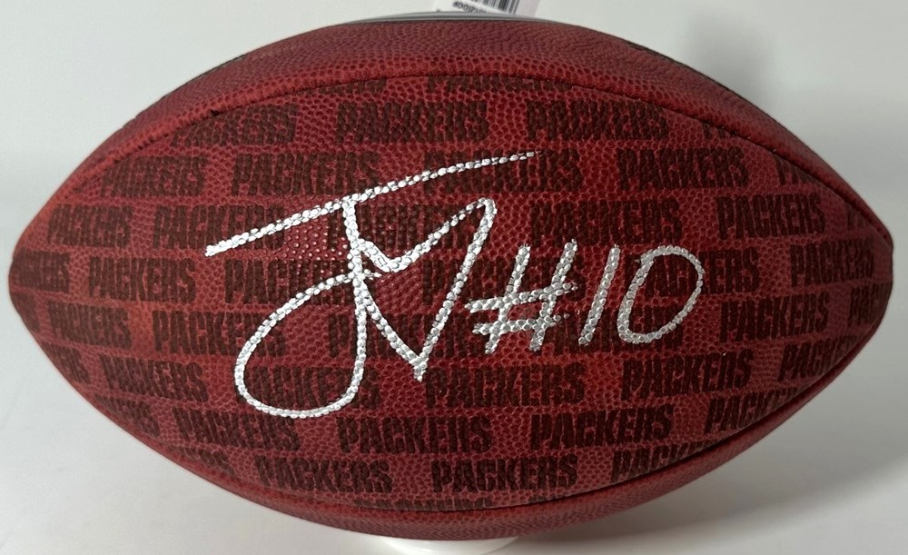 An autographed Wilson Authentic Duke Packers logo Football of Green Bay Packers Quarterback JORDAN LOVE. This item comes with Beckett authentication.