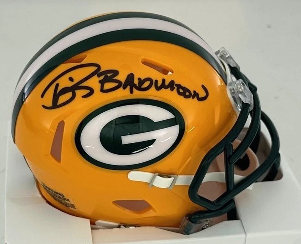 An autographed Riddell Speed mini helmet by Green Bay Packers Super Bowl Champ ANDRE RISON with the inscription "BAD MOON". This item comes with JSA authentication.