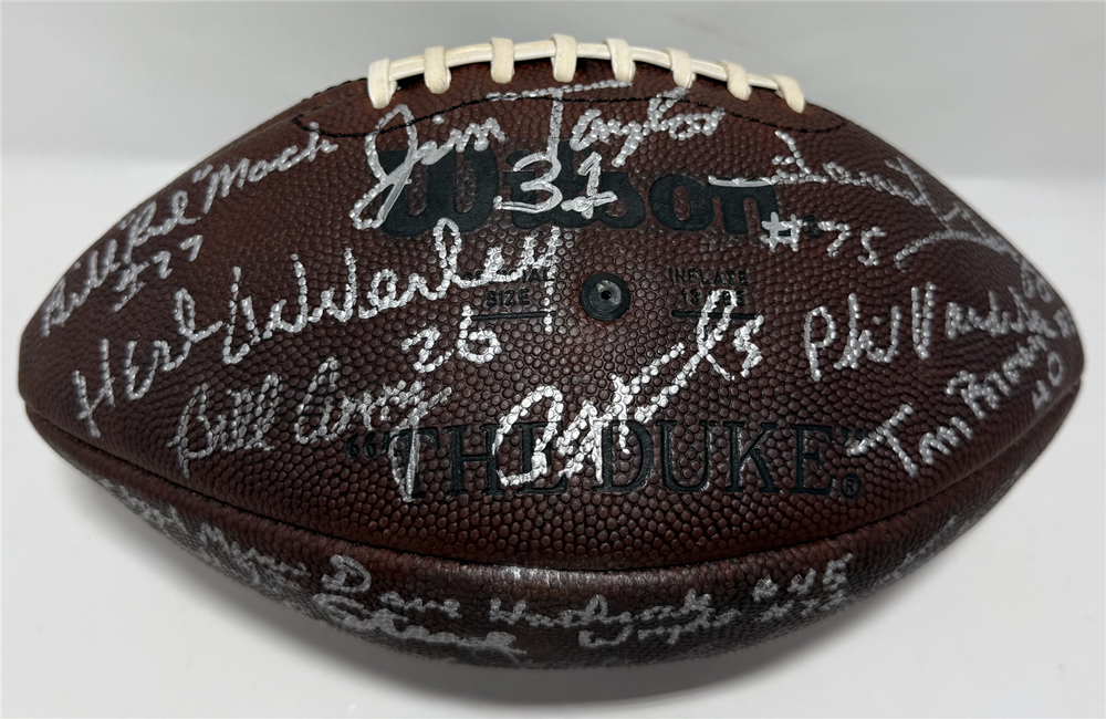 An autographed Authentic Wilson Football by 32 members of the Green Bay Packers Super Bowl I & II teams including. This item comes with Waukesha Sportscards authentication.