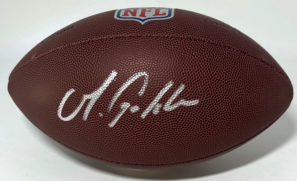 An autographed Wilson replica brown football by Green Bay Packers 1st Round Pick Receiver MATTHEW GOLDEN. This item comes with Beckett authentication.